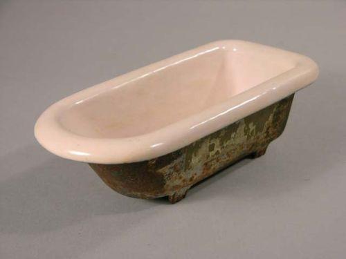 Salesman sample - pink bathtub, cast iron, porcelain over, manufacturer Buderus Hirzenhain, 7.25" x 3.5" x 2.5", minor chip on rim 1/8". Ex. cond.