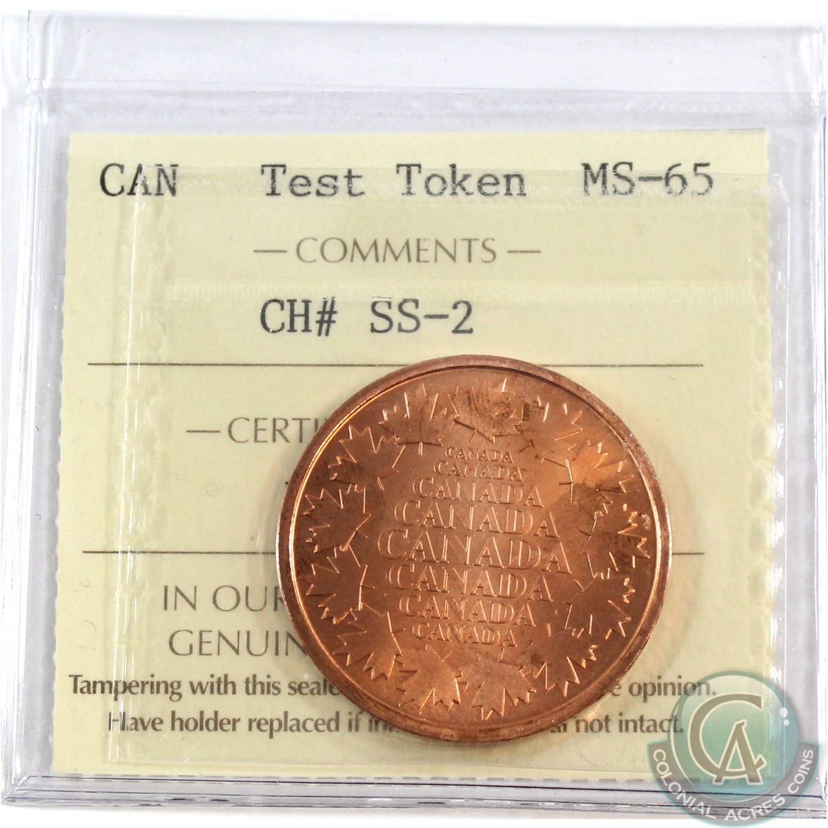 Salesman Sample Canada SS-2 ICCS MS-65. These Tokens are seldom offered for sale and somewhat rare. Two-ply Copper-plated steel, Bronze, 8.9 grams, 30mm, 2mm thickness