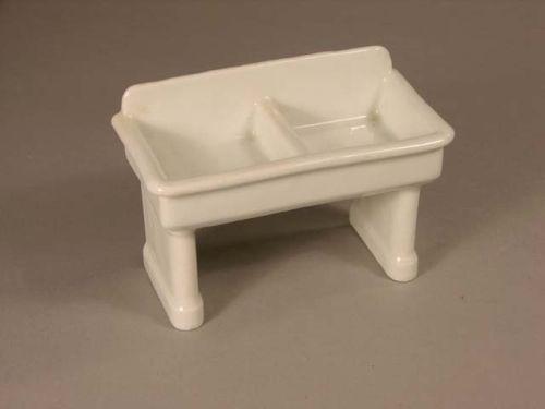 Salesman sample, china double sink dual pedestal, 3.5" x 5" x 2.5" ex. cond.