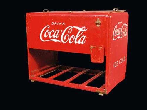 Salesman Sample Coca Cola Cooler. Paint scratches and scuff marks otherwise in good original condition. 12 1/2 X 10 1/2 X 8 inches.
