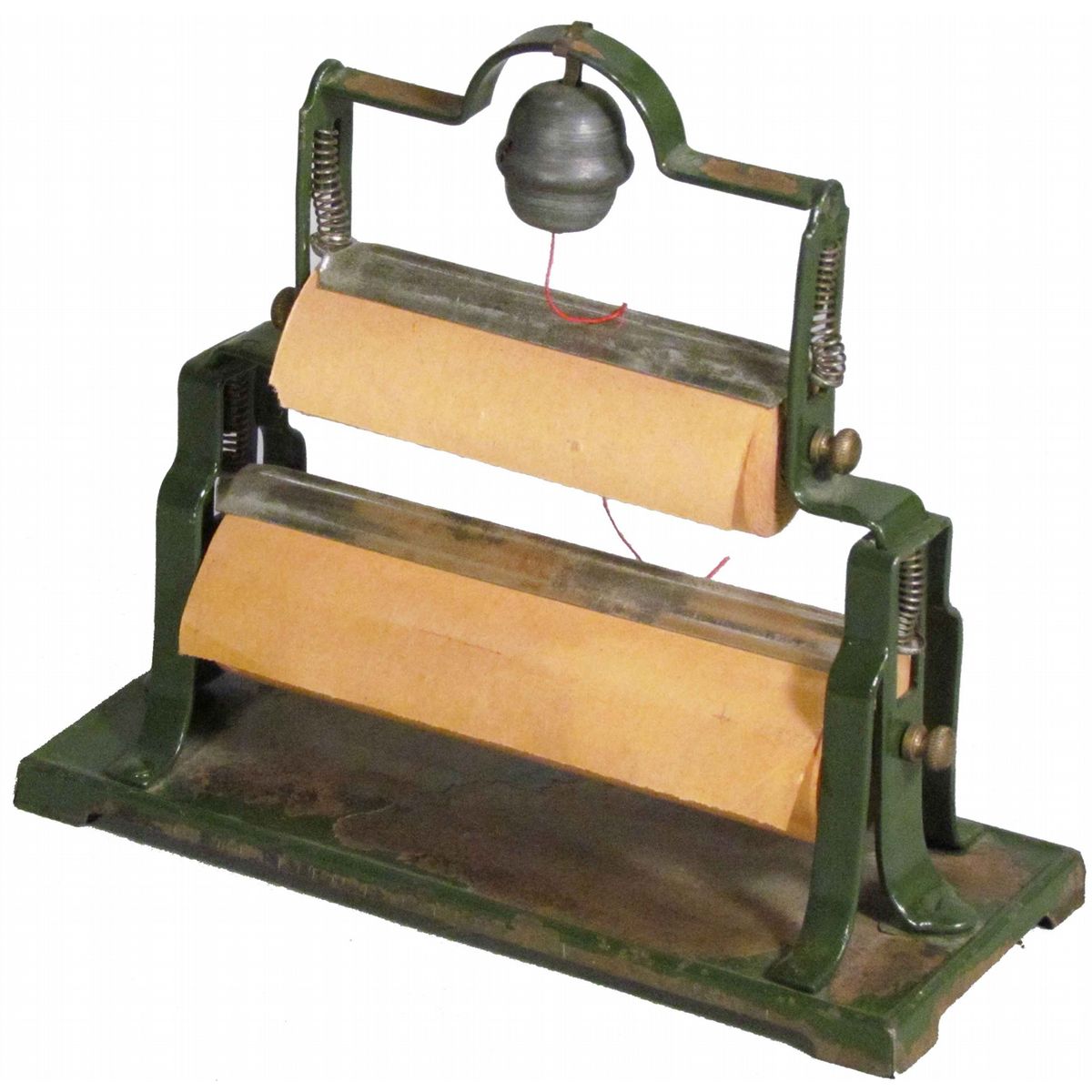 Salesman Sample Country Store Paper Holder. Tandem rolls with attached string holder. Some wear to paint otherwise very good condition. 6 1/4 X 5 1/2 X 2 1/2 inches.