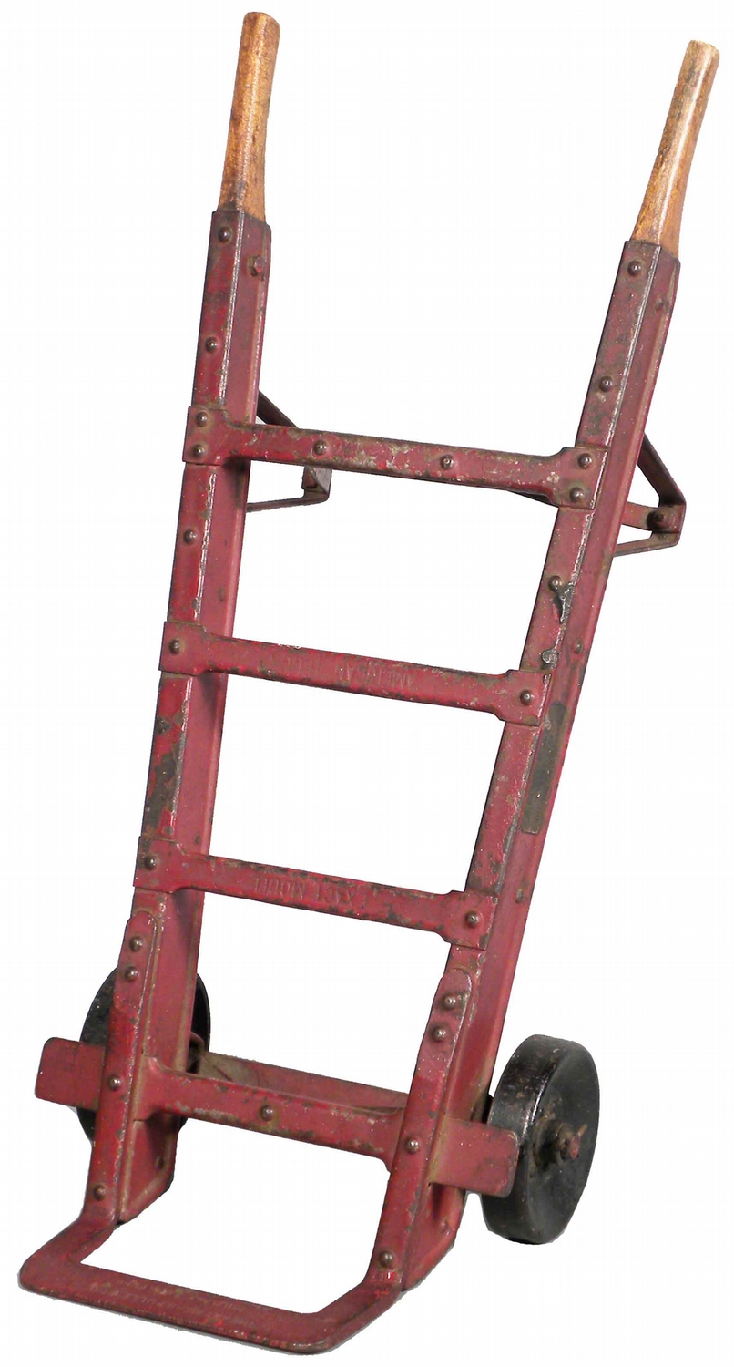 Salesman Sample Hand Truck. Exact model American Truck by the American Pulley Co. Philadelphia. 2 different choices in wheels, disc or spoke. Excellent condition. 12 inches tall.