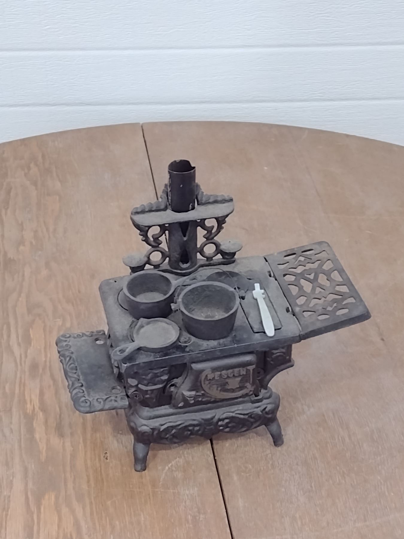 Salesman Sample Kitchen stove with 2 pots and skillet
