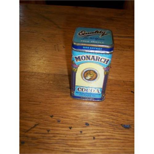 This is a little salesman sample of MONARCH COCOA.Great condition and measures 3" tall by 1 1/8" across front.Says Free Sample on top.Rare.