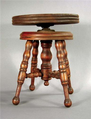 Salesman Sample Piano Stool. All wood, good condition. 7 1/2 inch dia X 9 1/2 inches tall.
