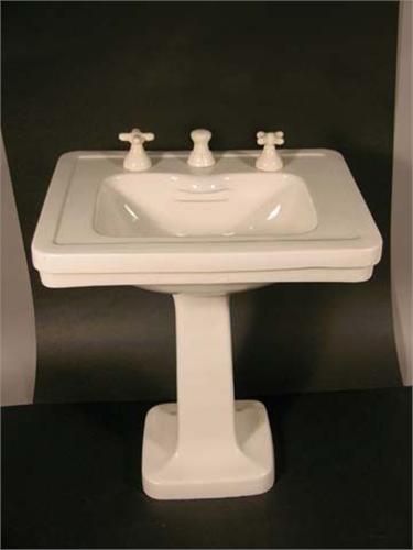 Salesman sample porcelain sink made of durock, approximately 18" tall, manufacturer Maddock Madbury, Ex. cond. No chips or cracks.
