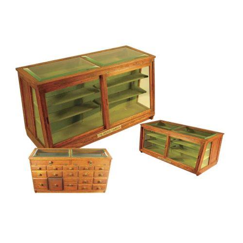 Extremely Rare Salesman Sample Store Counter Showcase by the Sherer Showcase Co. Oak with operational sliding glass door front. From the Bob Lyons Collection. Excellent original condition. 20 X 11 X 9 inches.