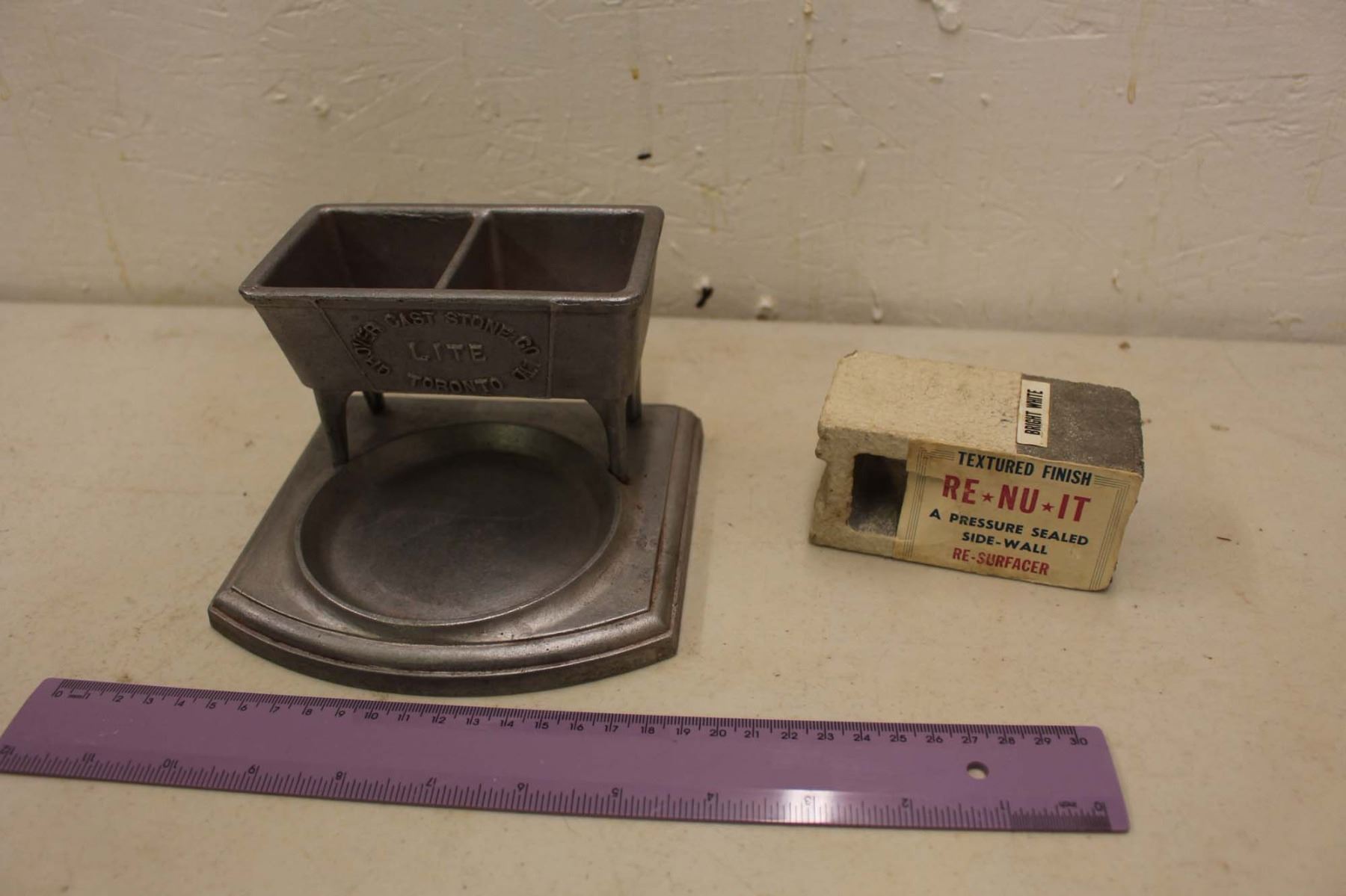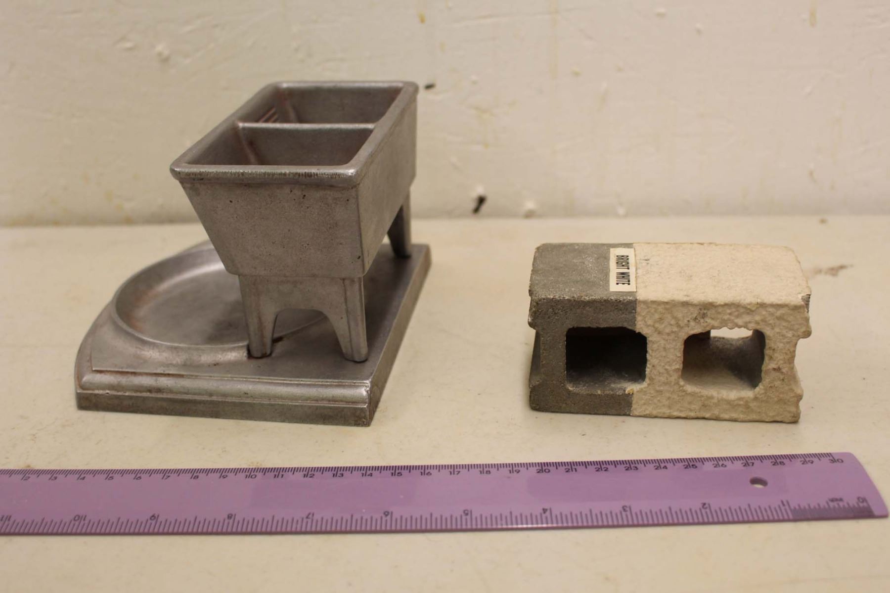 Grover Lite Double Wash Tub-Grover Cast Stone C. Ltd. Toronto (3"x6"x5.5") & A Cement Block- Textured Finish-Paper Label (4"x2")