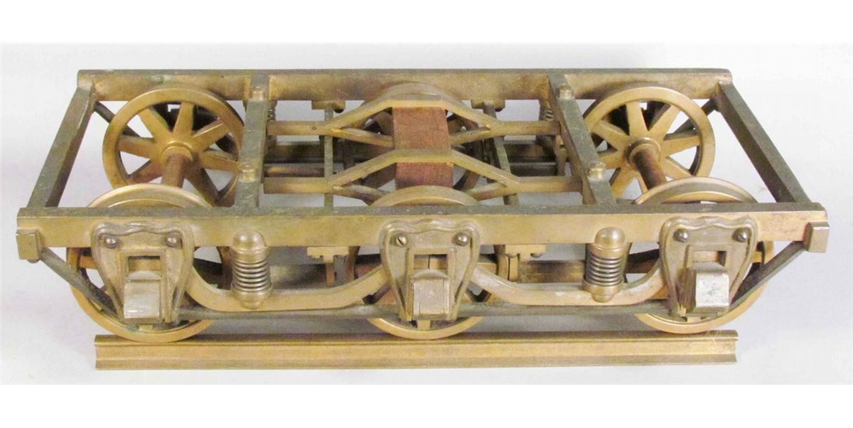 Salesman's Sample Trolley Car Chassis with track. Steel and brass construction with spare axle and wheels. Excellent condition. 13 1/2 X 8 X 3 inches.