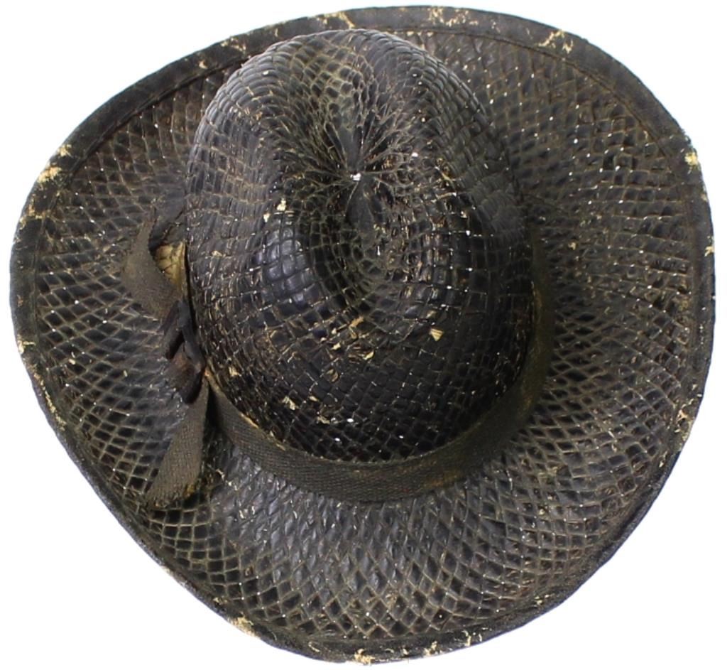 Salesman sample straw hat, shows overall good, outer hat band intact, interior missing major portion