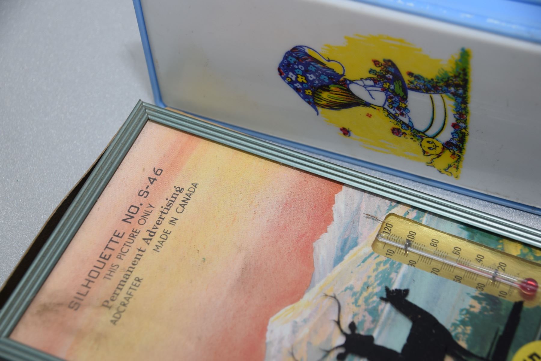Salesman sample thermometer picture, etc