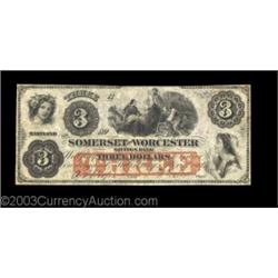 Salisbury, MD - Somerset & Worcester Savings Bank Nov. 1, 1864 $1, $2, $3, $5A nice set of four notes with different denominations, each signed and issued with the date changed from 1862 to 1864. All four notes grade Extremely Fine to About Uncirculated. 4 notes Important notice: Heritage usually auctions material at the rate of 200-250 lots per hour. On some occasions eBay Live bid software or the Internet may not be able to keep up with the pace of the auction. We recommend placing a realistic absentee bid now as insurance to avoid disappointment. Occasionally the auctioneer may eliminate or reject an eBay Live bid, and the auctioneer may also reopen a lot after the close of the eBay live bidding (usually because we missed an audience bid), and may reject your bid even if it shows you as the winning bidder. By bidding via eBay Live, you agree that Heritage may award the lot to another bidder at its sole discretion under the circumstances described above or any other reasonable circumstances. Also please note that all Heritage lots purchased through eBay Live carry a 20% Buyer's Premium. Please make sure you read the Terms and Conditions before you bid.