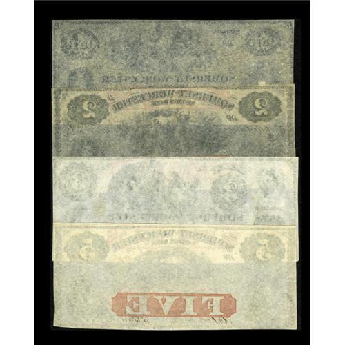 <B>Salisbury, MD- Somerset and Worcester Savings Bank</B></I> $1; $2; $3; $5 1863 - 1864<BR> These notes are of the red overprint variety with the final digit in the date written over by hand. These are well preserved <B>Choice Crisp Uncirculated </B></I>examples.<BR><BR><b>Shipping:</b> Coins & Currency (<a target="_blank" href="http://www.heritageauctions.com/common/shipping.php">view shipping information</a>)