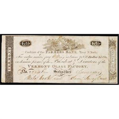 Salisbury, VT, The Vermont Glass Factory, $1.25 Third Series, Choice Extremely Fine.