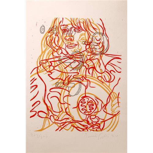 <Our item number 138626><B>Salle, David.</B> <I>Unknown.</I> (1952-) American painter and contemporary figurative artist. Embossed and printed lithograph of two alternating, overlapping female profiles in gold and red surrounded by a series of gray cog-like objects, one with a face. Signed by the artist and numbered 373/500. Size: 15½ x 13 inches, framed to an overall size of 18¼ x 15¾ inches. <BR>Estimated Value $1,000 - 1,500. <BR><BR>Our item number 138626<BR><IMAGES><P ALIGN="CENTER"><IMG SRC="http://www.goldbergcoins.net/liveauction/49jpegs/138626.jpg"> </P></IMAGES>