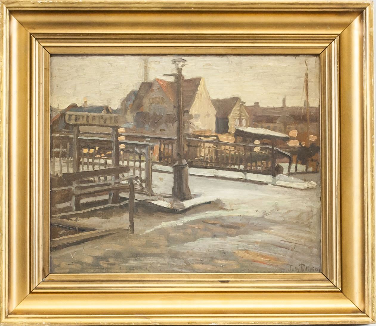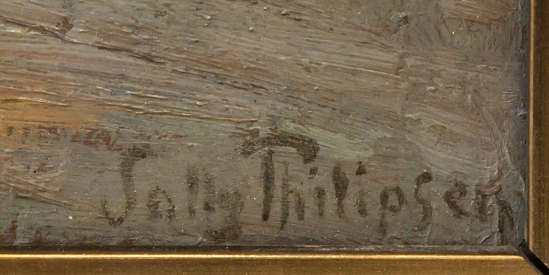Oil on panel, framed. Featuring scene from Christianshavn. Signed "Sally Philipsen" in the bottom right corner. "Sally Philipsen [illegible] Christianshavn" inscribed on verso. Label attached to verso reads "91 SALLY NIKOLAI PHILIPSEN 1879-1936 OIL ON PANEL 30.5 x 38 cm". Attributed to Sally Nikolai Philipsen (1879-1936, Danish). 30.5 x 38 cm (12 x 15 in), Frame: 42 x 49 cm (16.5 x 19.5 in).