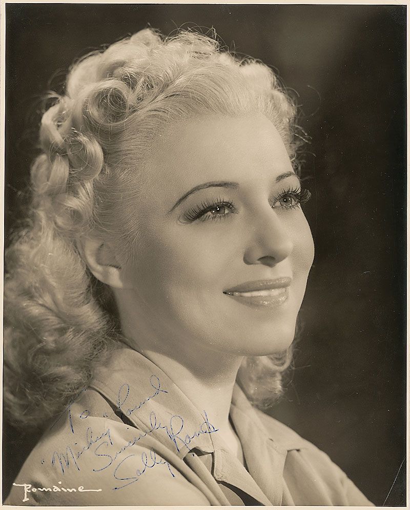 Vintage crystal-clear glossy 8 x 10 close-up photo, signed and inscribed in blue ink, “To ‘Mickey’ Pound, Sincerely, Sally Rand.” Moderate overall irregular ink adhesion to signature and inscription, otherwise fine condition.