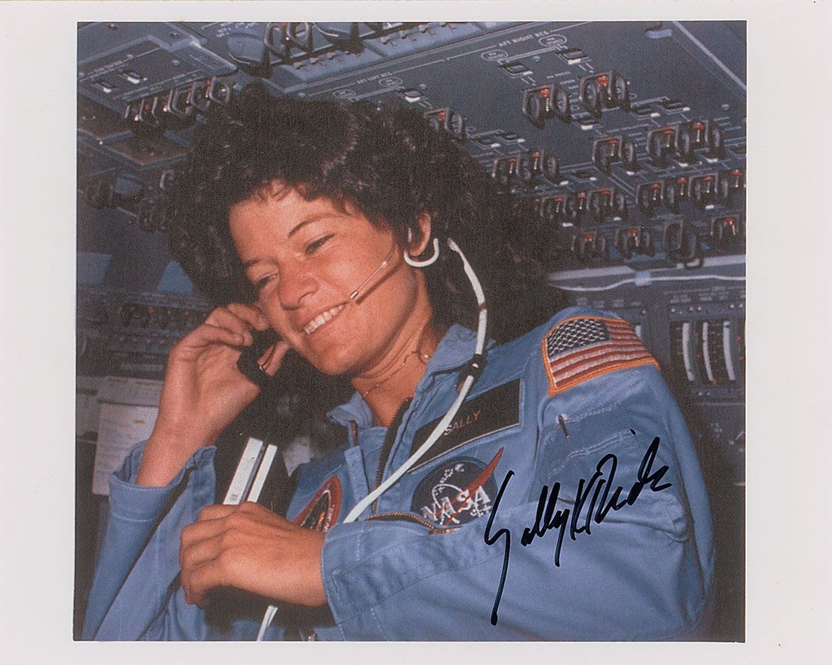 Color glossy 10 x 8 photo of Ride in orbit on the shuttle, signed in black felt tip. In very fine condition.