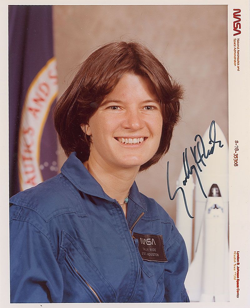 Color satin-finish 8 x 10 NASA ‘red-numbered’ photo, signed in black felt tip, “Sally K. Ride.” In very fine condition.
