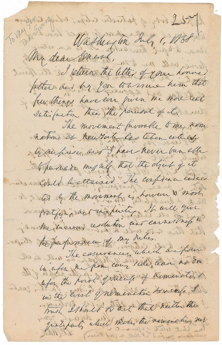 Chase had been appointed chief justice of the Supreme Court by President Lincoln in 1864 and served in that capacity until his death in 1873. He sought the Democratic nomination in 1868 but received little support at the Democratic National Convention due in part to his advocacy for black suffrage, which he alludes to in this letter. The DNC took place shortly after this letter from July 4–9 and resulted in the nomination of Horatio Seymour, who had actually been one of Chase’s biggest supporters. Excellent political content from the Reconstruction era.