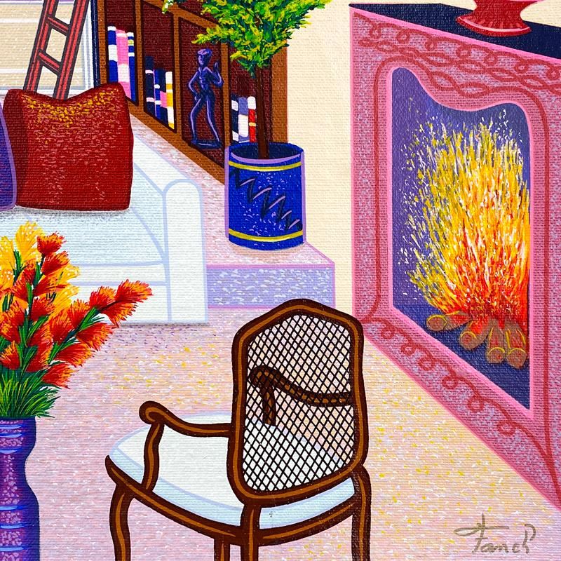 "Salon Parisian" is a limited edition serigraph on canvas by Fanch, AP numbered inverso and hand signed by the artist. Includes Letter of Authenticity. Measures approx. 20.5" x 20.5" (image). This proof came from Fanch Ledan's personal collection. It may have some slight imperfections in the image and border, but it's overall condition was inspected and approved by him.