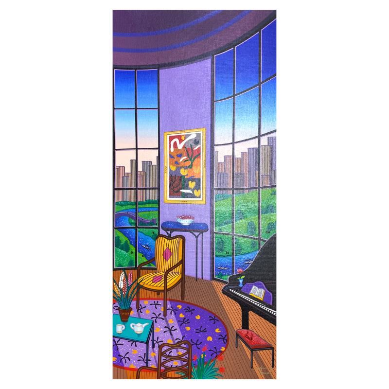 "Salon Rotonde" is a limited edition serigraph on canvas by Fanch, AP numbered inverso and hand signed by the artist. Includes Letter of Authenticity. Measures approx. 27.5" x 12.5" (image). This proof came from Fanch Ledan's personal collection. It may have some slight imperfections in the image and border, but it's overall condition was inspected and approved by him.