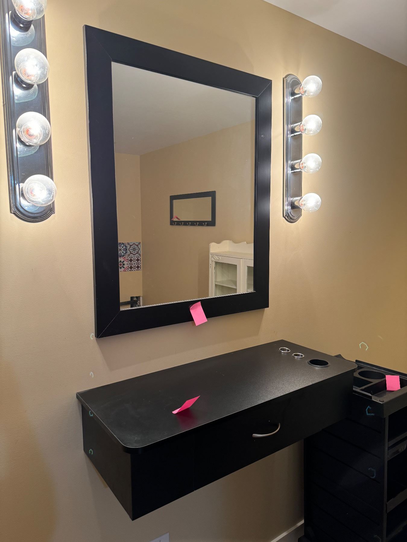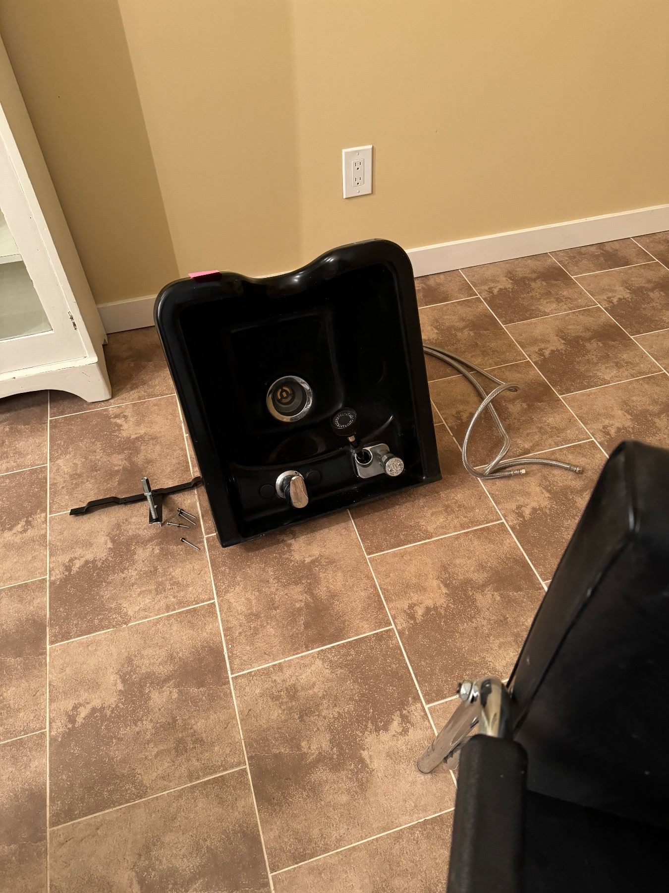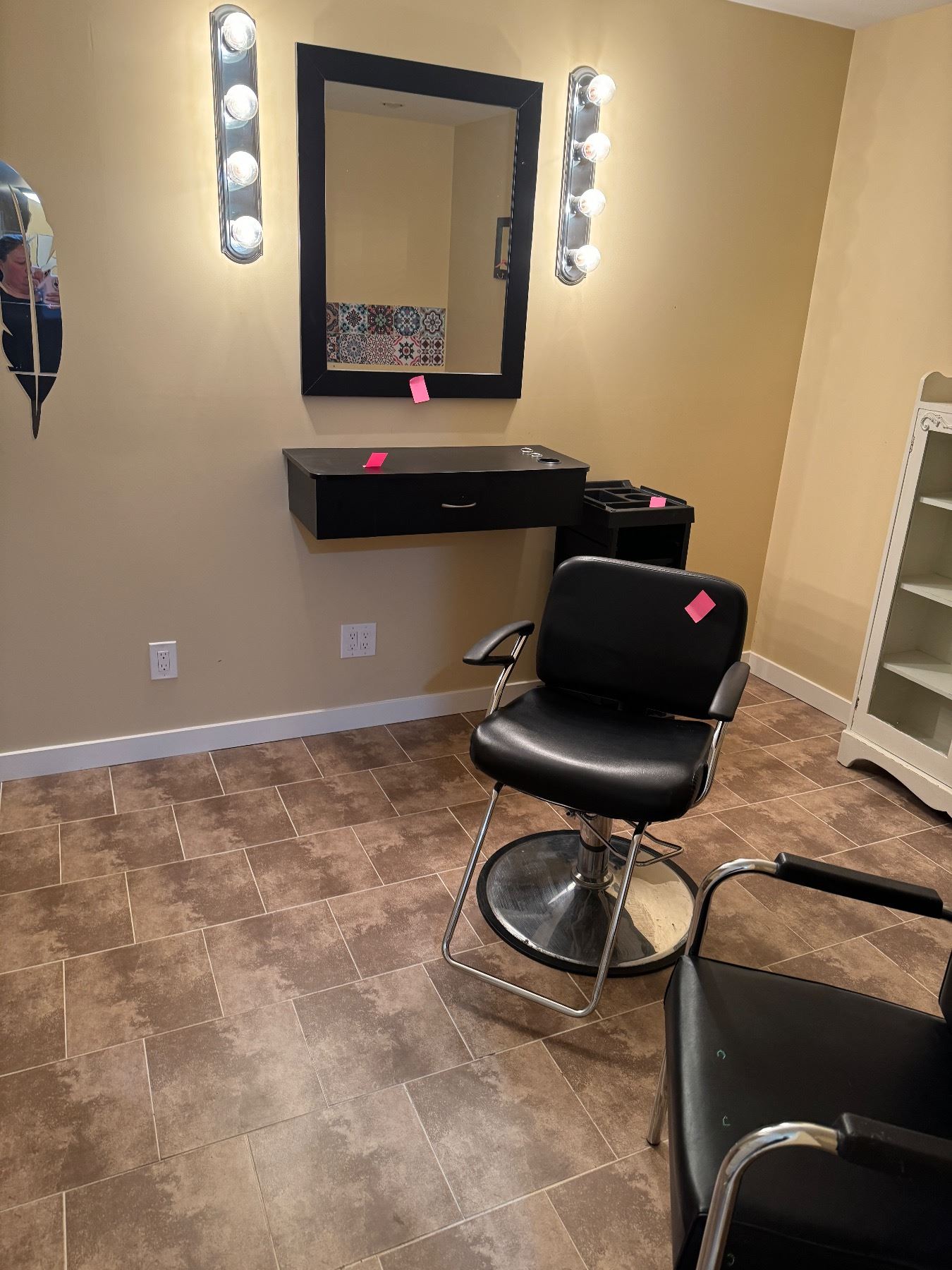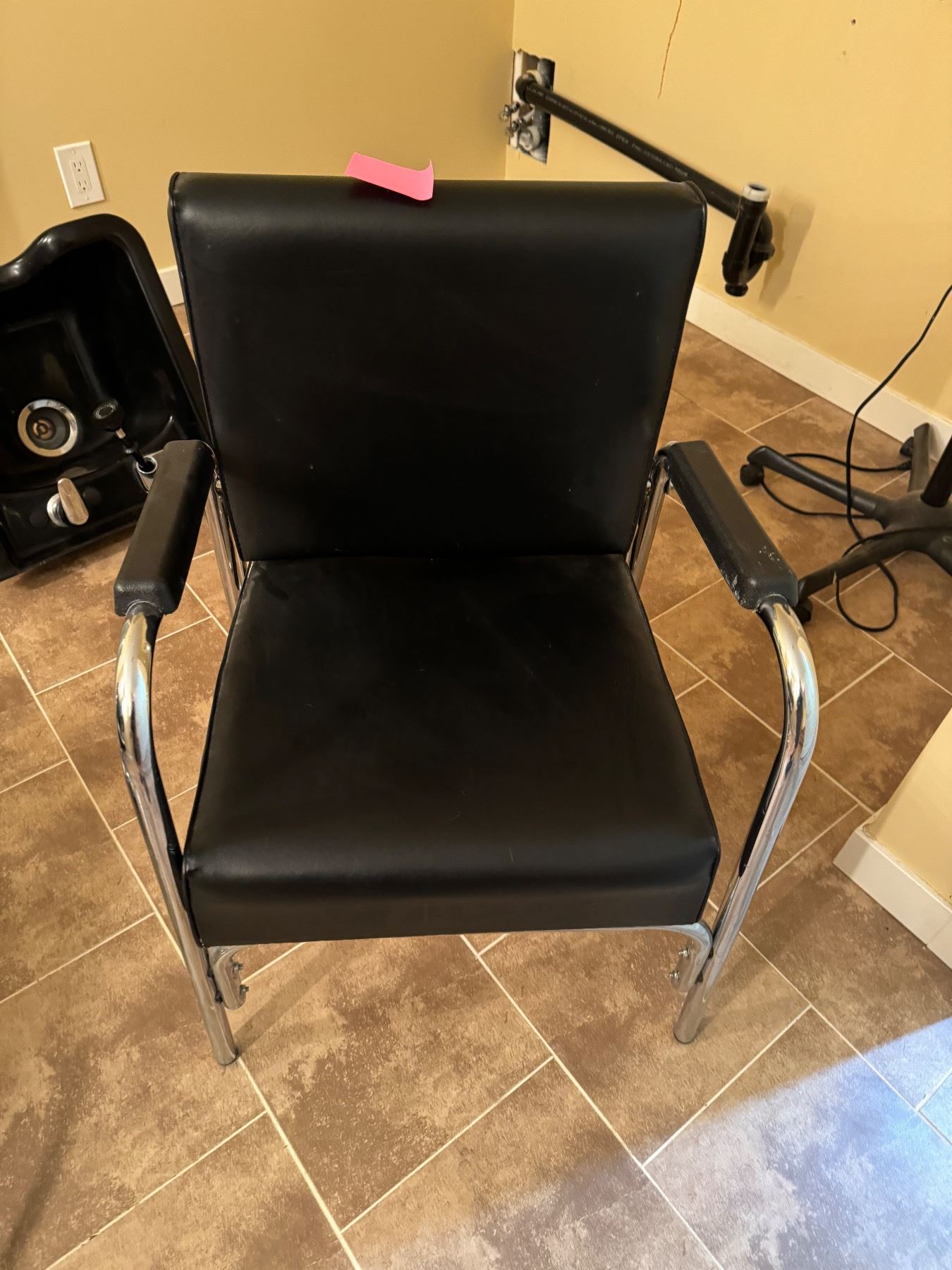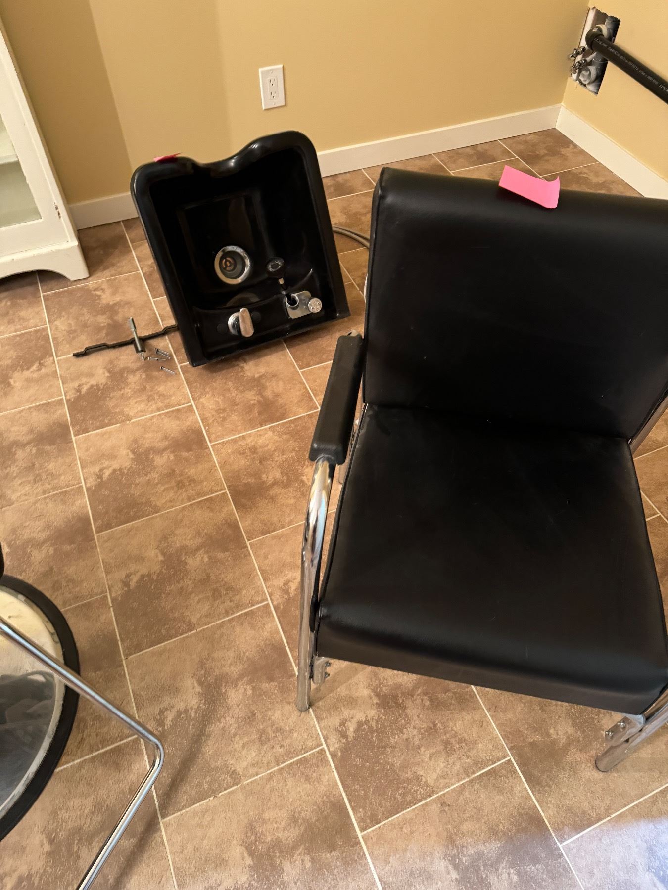 Salon items 2 chairs, sink, blow reuse shelf and mirror and rolling cart