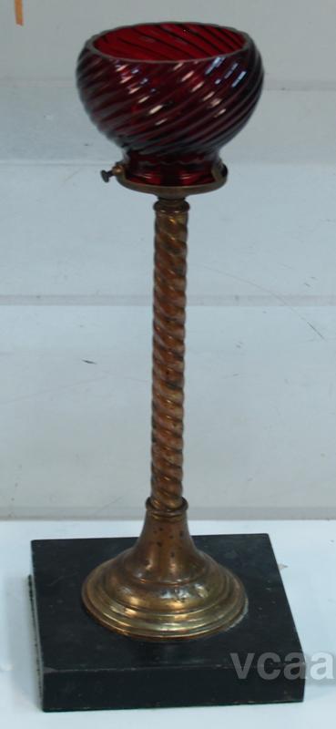 Saloon Bar-Top Gas Lighter w/ red glass globe, consignor claims from Goldfield Hotel