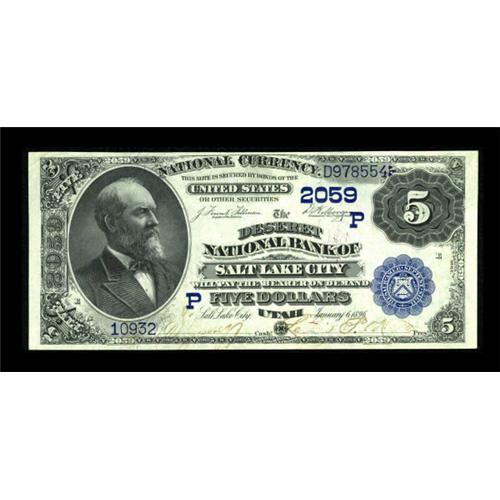 <B>Salt Lake City, UT</B></I> - $5 1882 Date Back Fr. 534 <B>The Deseret NB</B></I> Ch. # (P)2059<BR> A gorgeous example with only the lightest traces of actual circulation. <B>Extremely Fine-About Uncirculated,</B></I> with full original embossing, great paper quality, and tons of eye appeal. <BR><BR><b>Shipping:</b> Coins & Currency (<a target="_blank" href="http://www.heritageauctions.com/common/shipping.php">view shipping information</a>)