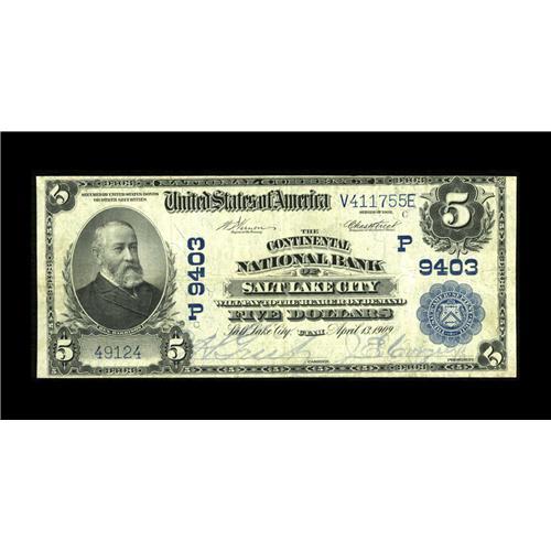 <B>Salt Lake City, UT</B></I> - $5 1902 Plain Back Fr. 600 <B>The Continental NB</B></I> Ch. # (P)9403<BR>A quite crisp <B>Very Fine</B></I> with stamped signatures.<BR><BR><b>Shipping:</b> Coin/Currency (<a target="_blank" href="http://www.heritageauctions.com/common/shipping.php">view shipping information</a>)