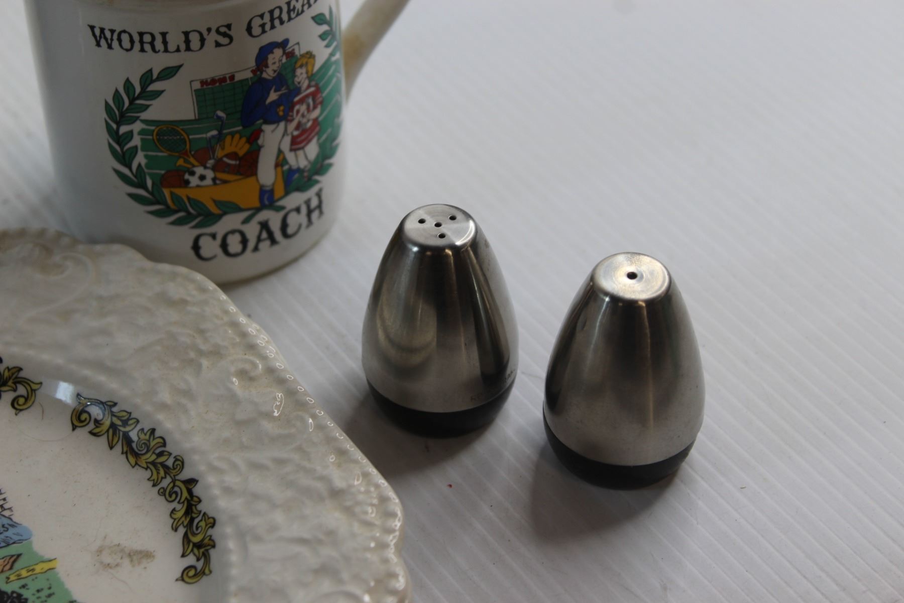 Salt & Pepper Shakers, (6) Assorted Mugs and Assorted Decorative Plates