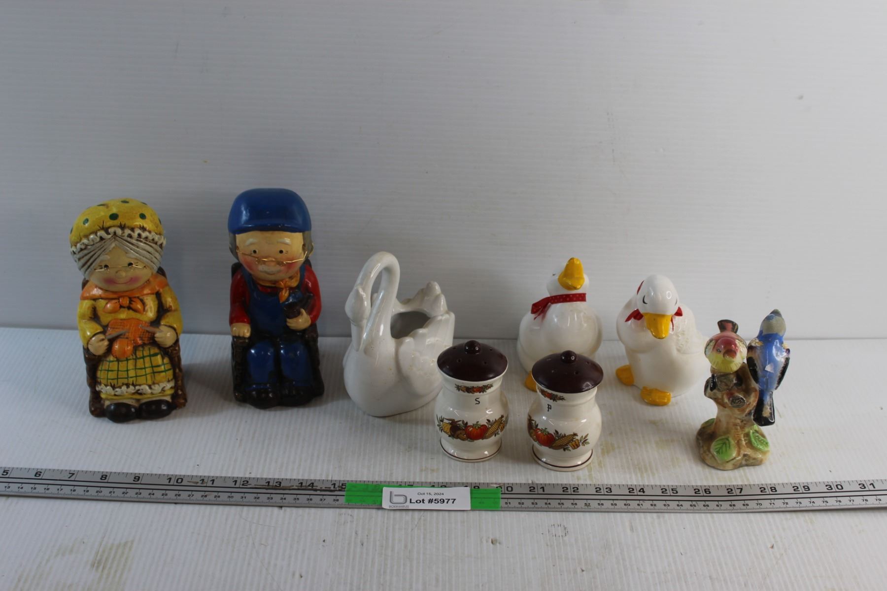 Salt & Pepper Shakers, Swan Planter, Piggy Banks and Assorted Decorations