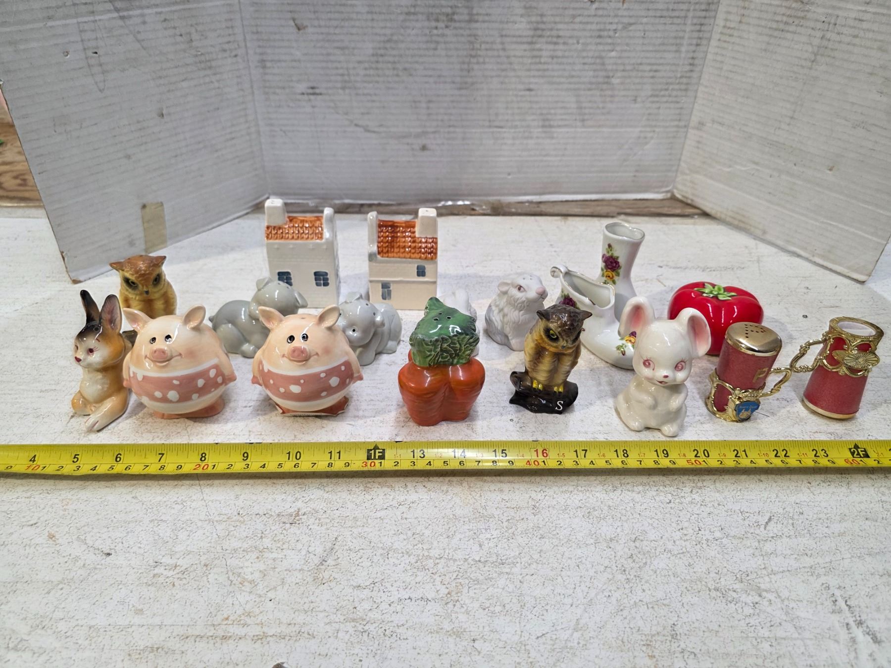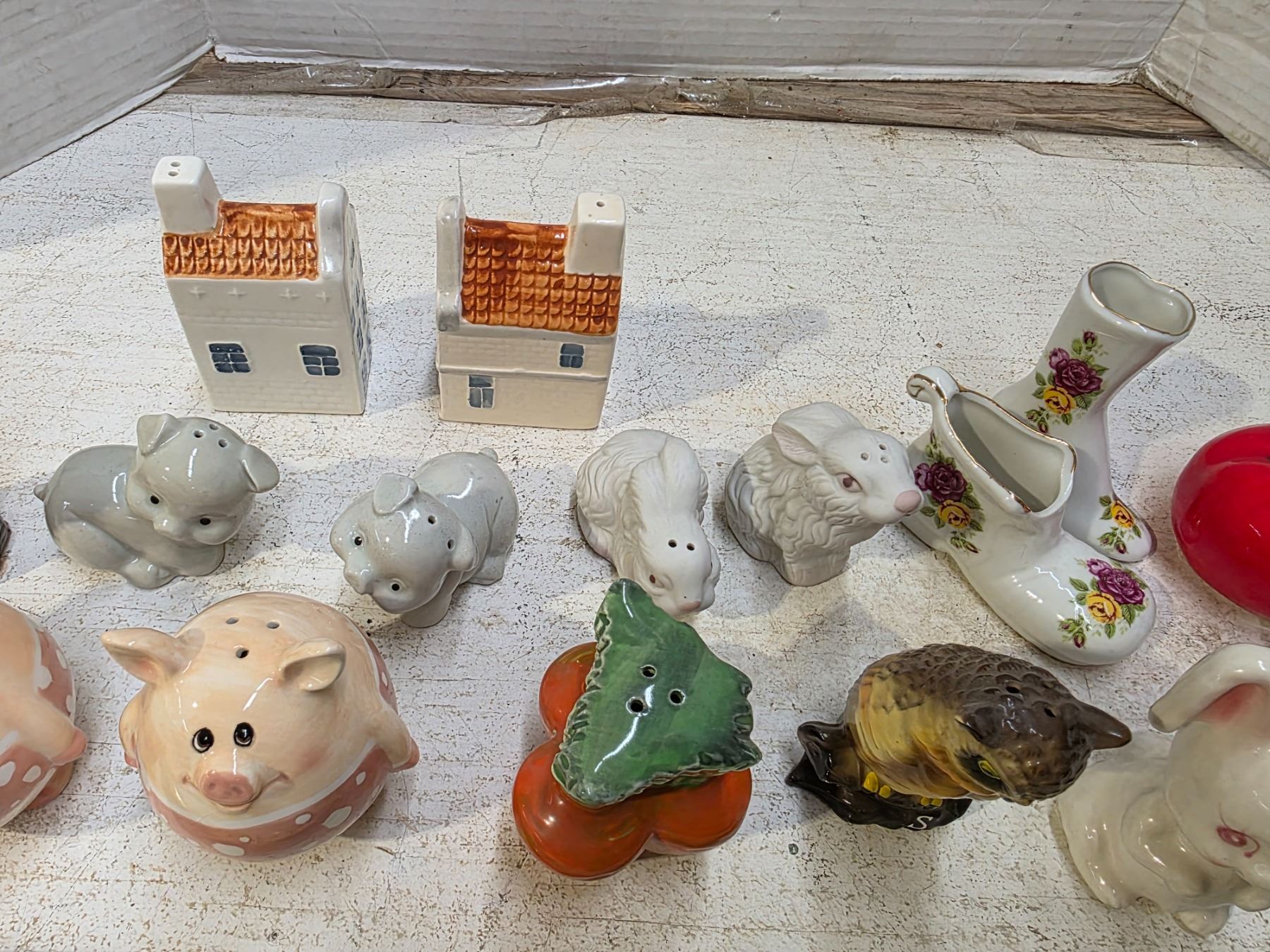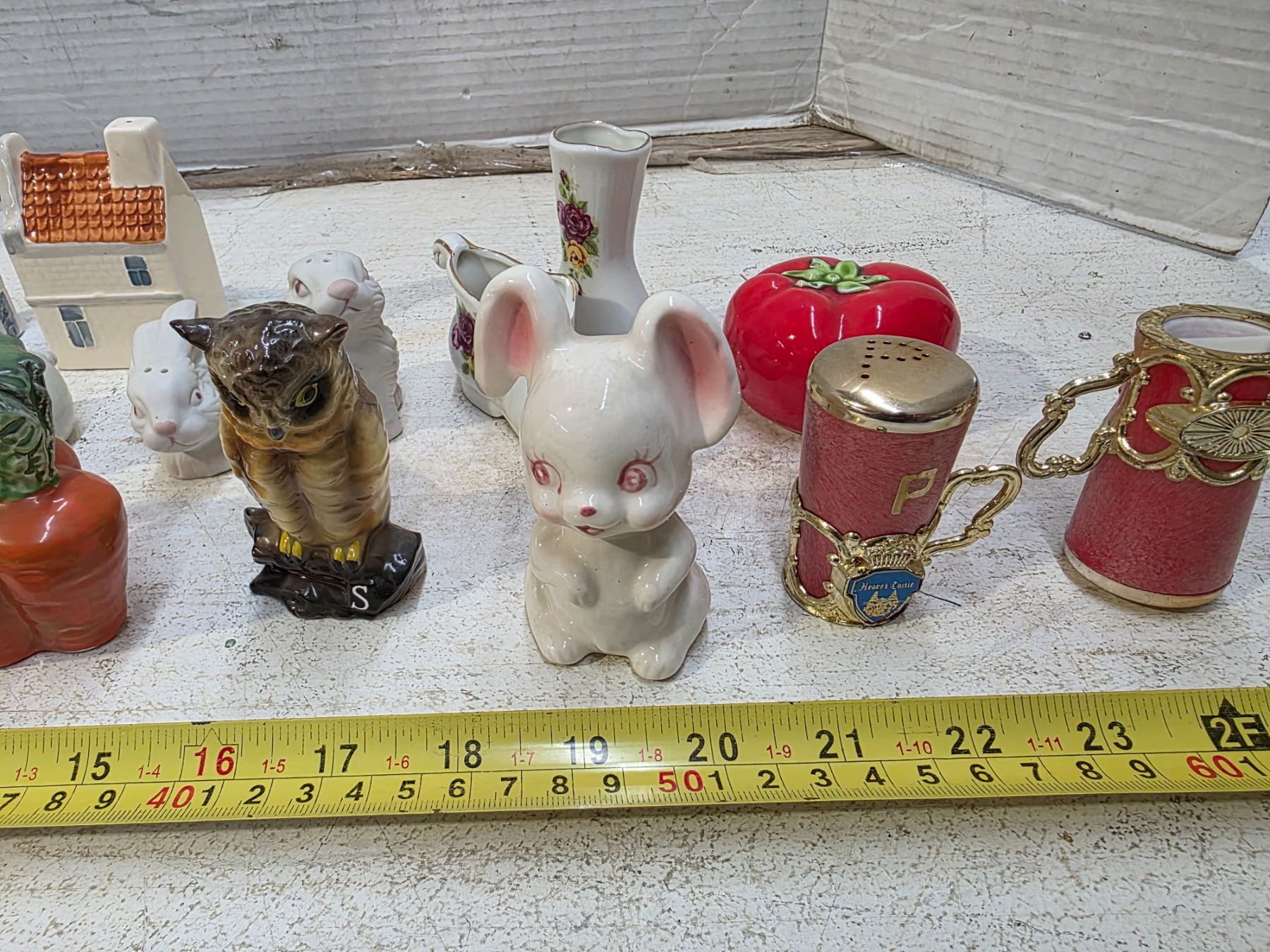 Salt and pepper shaker with misc figures