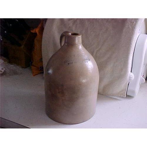 Jug, 1 gal. salt glaze,signed on front NEw York stone ware Co. Fort Edward, NY (Rare) (c) late 1800's; condition, no cracks, chips etc. great addition to your collection; Off Set Handle (Unusual)