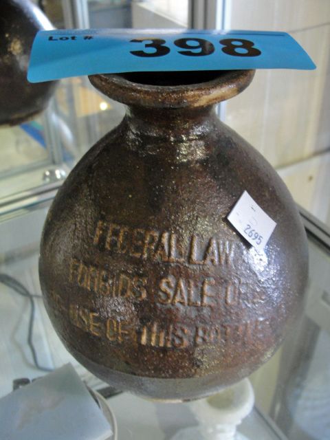 Salt glazed crock jug with federal law description