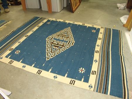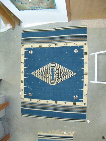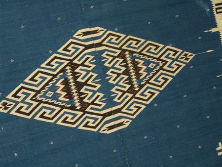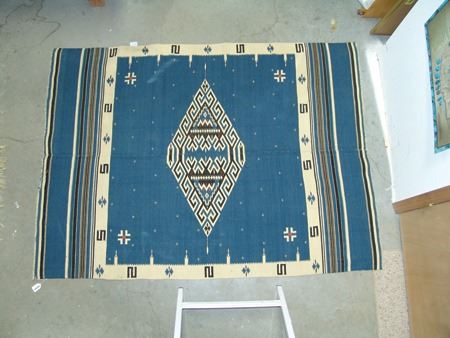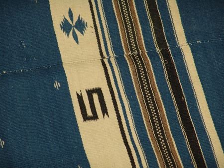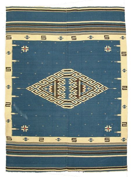 Ca. 1930s, Large and early finely woven two-panel blanket/serape with elaborate central diamonds and other symbols. Very good condition, shows some use. 70" x 52"