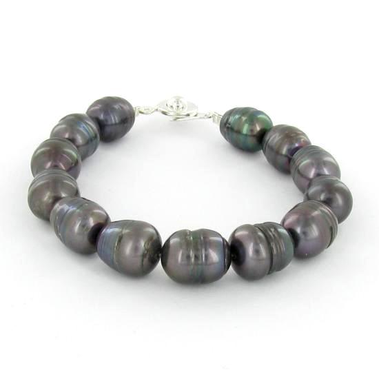 Excellent saltwater black pearls (10mm); 14 count; 6.5"; $429 retail