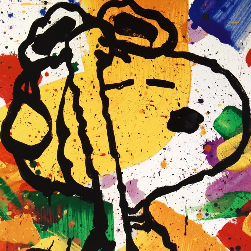 Master Artist Tom Everhart is the protege of famed "Peanuts" creator, Charles M. Schulz (1922â€"2000). As the only artist in the world granted the rights to draw the "Peanuts" characters in his own work, Everhart creates vibrant, extremely collectible rainbow masterpieces featuring Snoopy, Woodstock and the gang. Bereaved by Schulz's death in February 2000, Everhart created this special piece, released in October 2000 - the 50th Anniversary of the first publication of the "Peanuts" comic strip. "Salute" is limited to only 9,500 examples, plus 100 artist proofs, printed on acid free, archival quality enameled paper and plate-signed by Everhart. Measures approx. 25" x 33" (with border); 22" x 29.5" (image), with Certificate of Authenticity! All plates used to create this image have been destroyed.