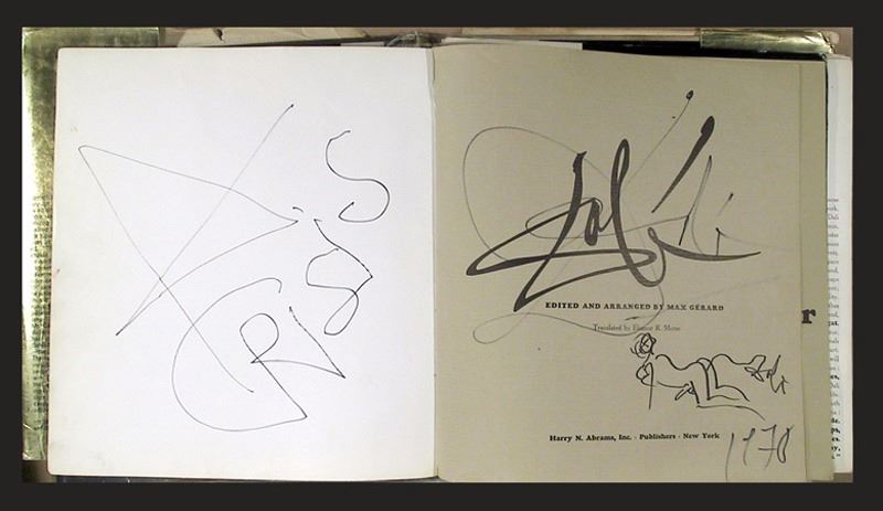 Salvador Dali, Dali by Max Gerard (Crisis), Autographed Book with Ink Drawing