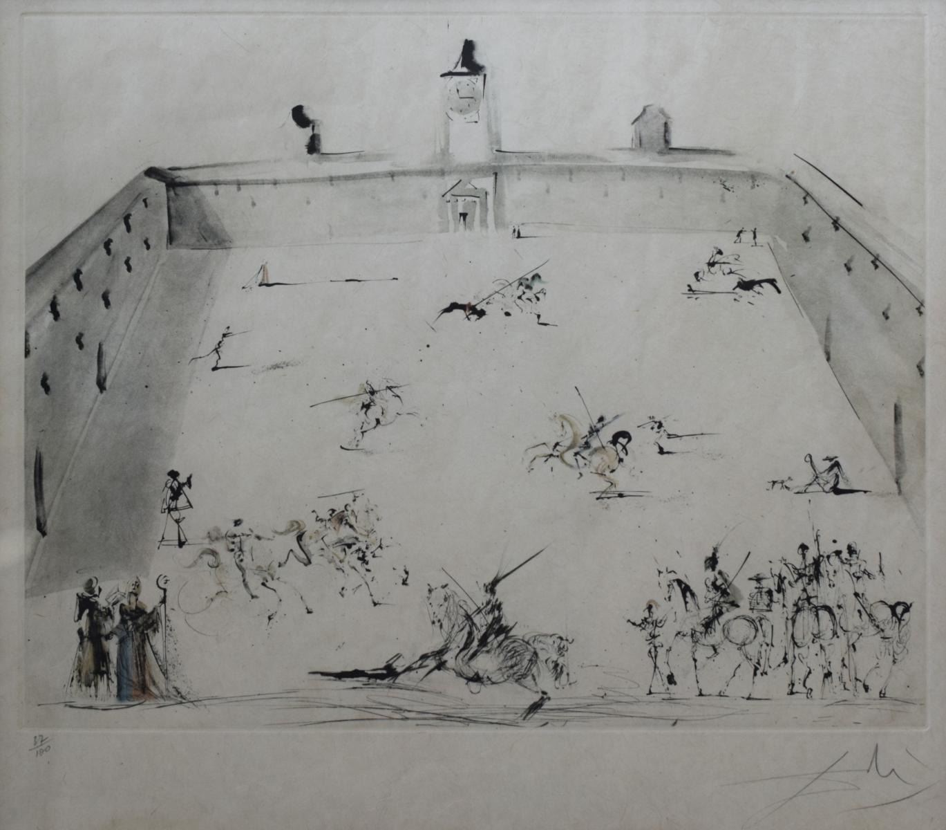 Artist: Salvador Dali. Medium: Etching with drypoint in colors,. Title: Tienta, 1967. Size (Unframed): 19" x 22". Size (Framed): 30" x 32". Limited Edition: Numbered 37/100. Certificate of Authenticity: Is included. Reference# 11370.