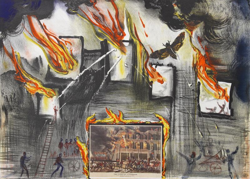 Salvador Dali, Fire! Fire! Fire! from the Currier and Ives Suite, Lithograph and Collage