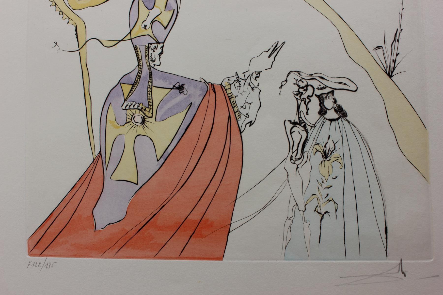 Artist: Salvador Dali. Medium: Hand Colored Original Etching. Title: The Sacred Love of Gala. Size (Unframed): 25.5" x 19.5". Certificate of Authenticity: From Frank Hunter. Reference# 10460.