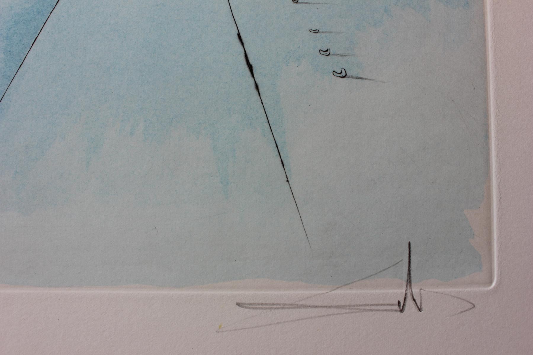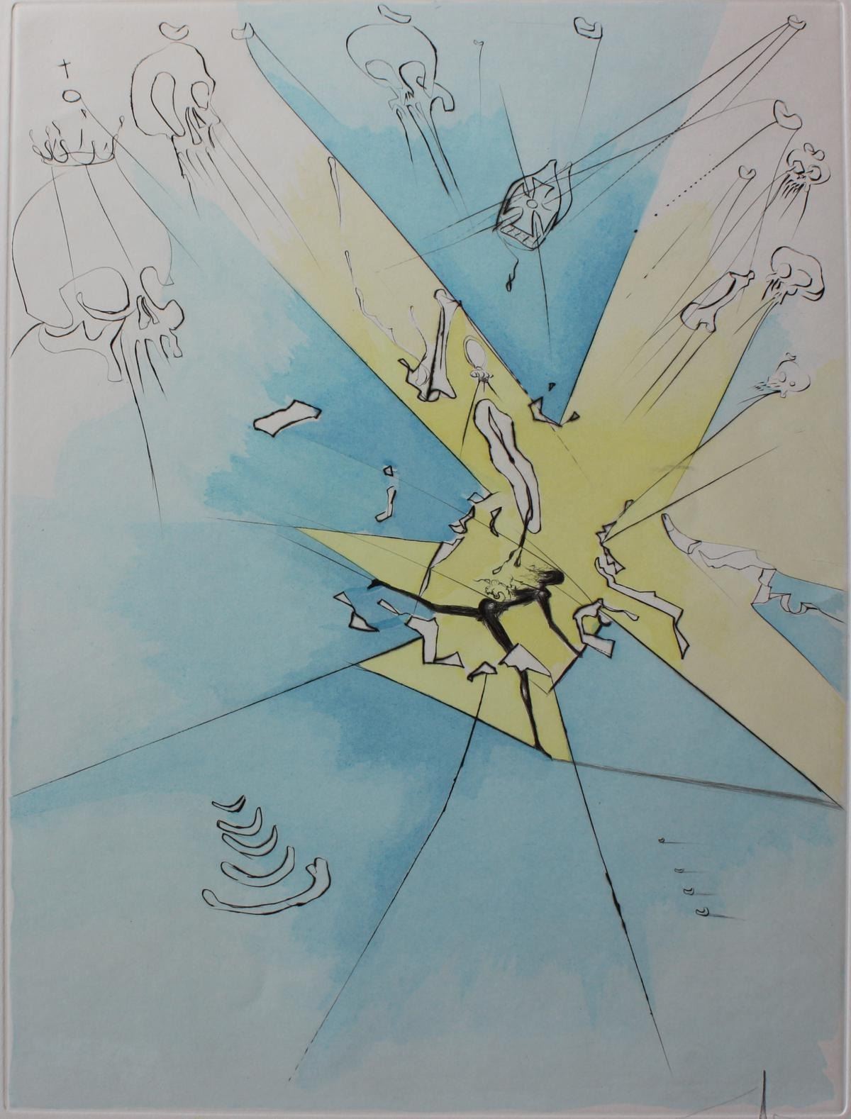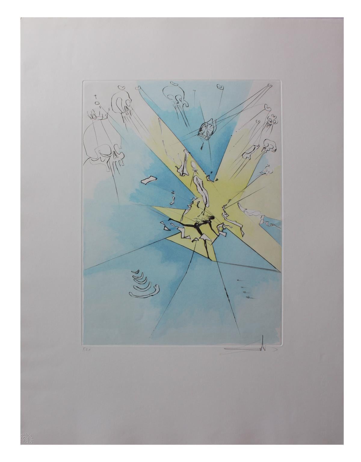 Artist: Salvador Dali. Medium: Hand Colored Original Etching. Title: Un Entre Fracassant aux U.S.A. Size (Unframed): 25.5" x 19.5". Certificate of Authenticity: From Frank Hunter. Reference# 10444.
