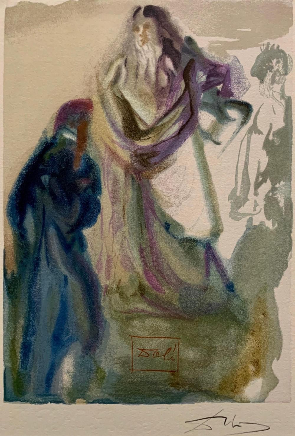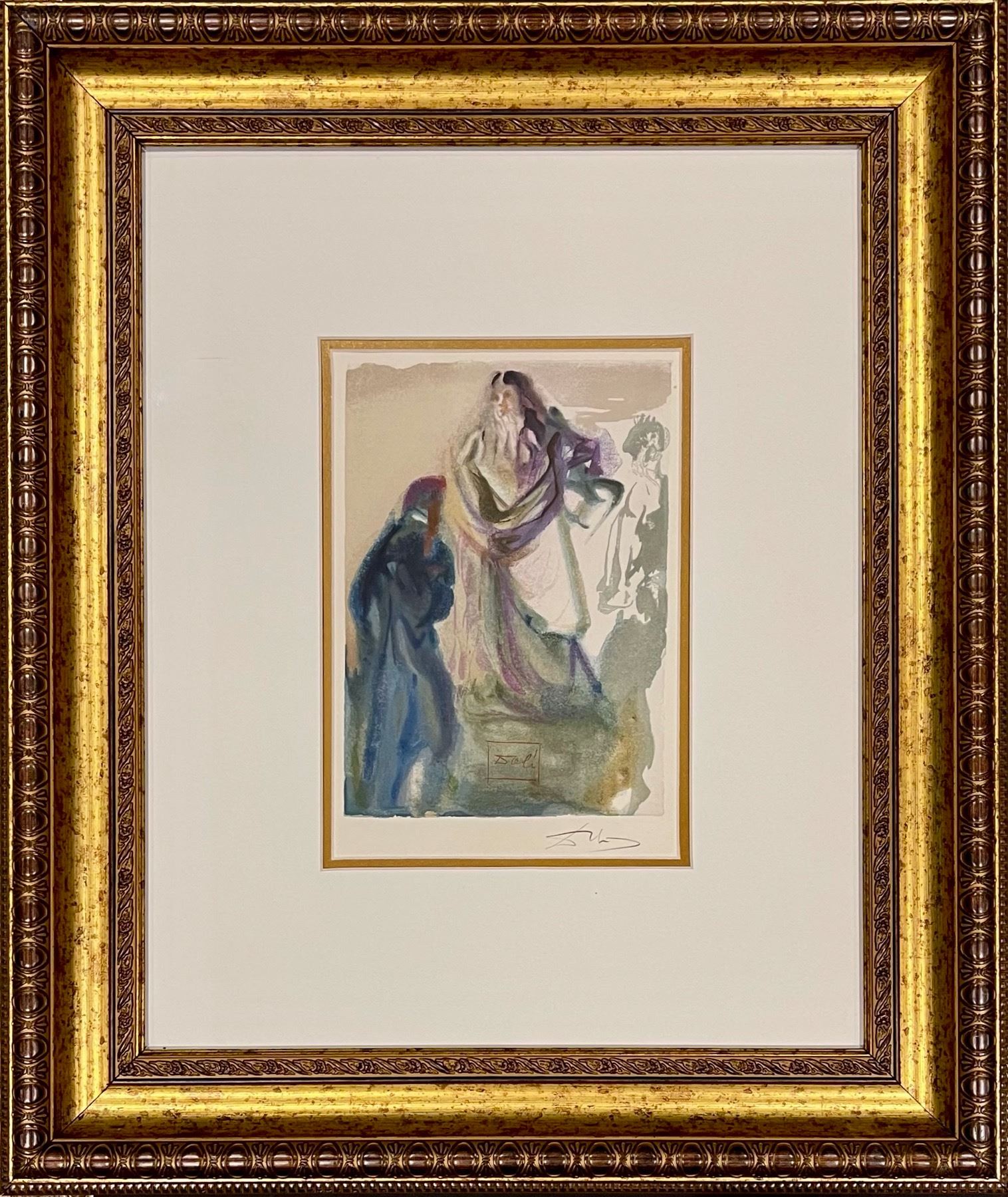 Salvador Dali (1904-1989) Original color woodblock, hand signed by Dali in pencil, 1964. From the suite The Divine Comedy, Cantique: Le Paradise. Editions Les Heures Claires, Paris. Authenticated and countersigned by the publisher artistic director Jean Estrade on verso. New frame, guaranteed authentic, COA provided. Sheet 12 15/16 x 10 1/4 in, framed 26 x 22 inches.