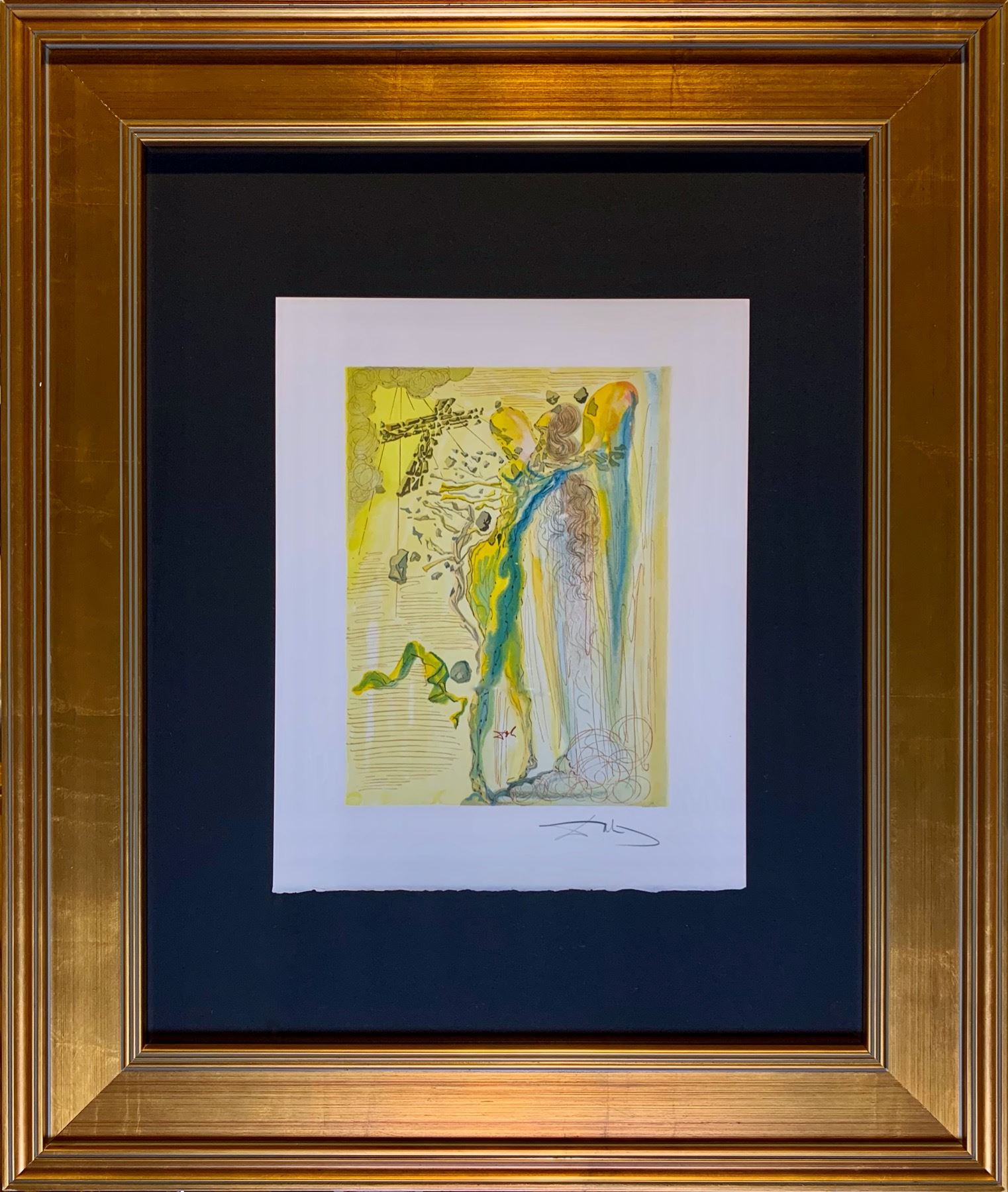 Salvador Dali (1904-1989) Original color woodblock, hand signed by Dali in pencil, 1964. From the suite The Divine Comedy, Cantique: Le Paradise. Editions Les Heures Claires, Paris. Authenticated and countersigned by the publisher artistic director Jean Estrade on verso. Sheet 12 15/16 x 10 1/4 in. New frame 25.5 x 21.5 inches. Guaranteed authentic, COA provided.