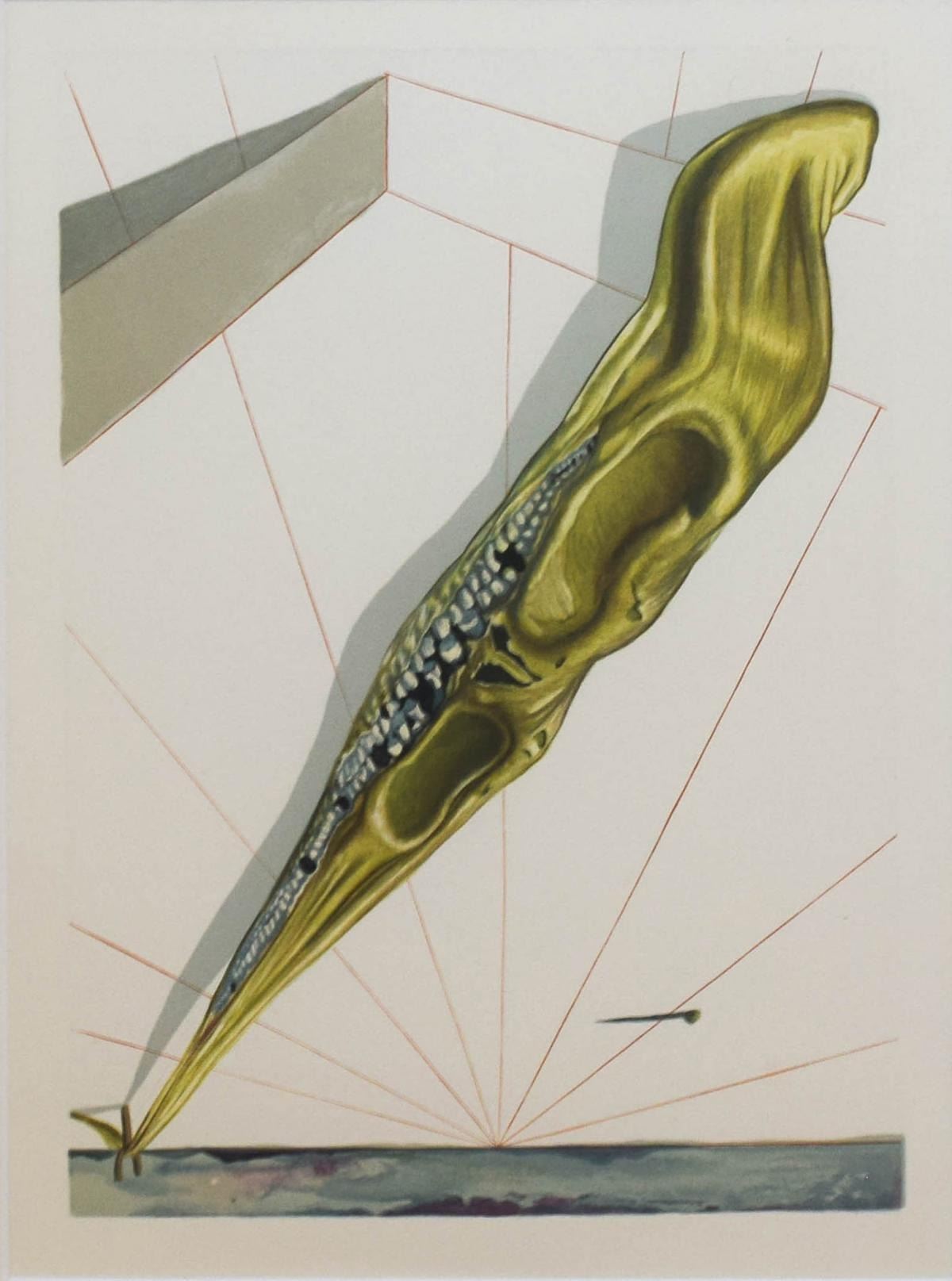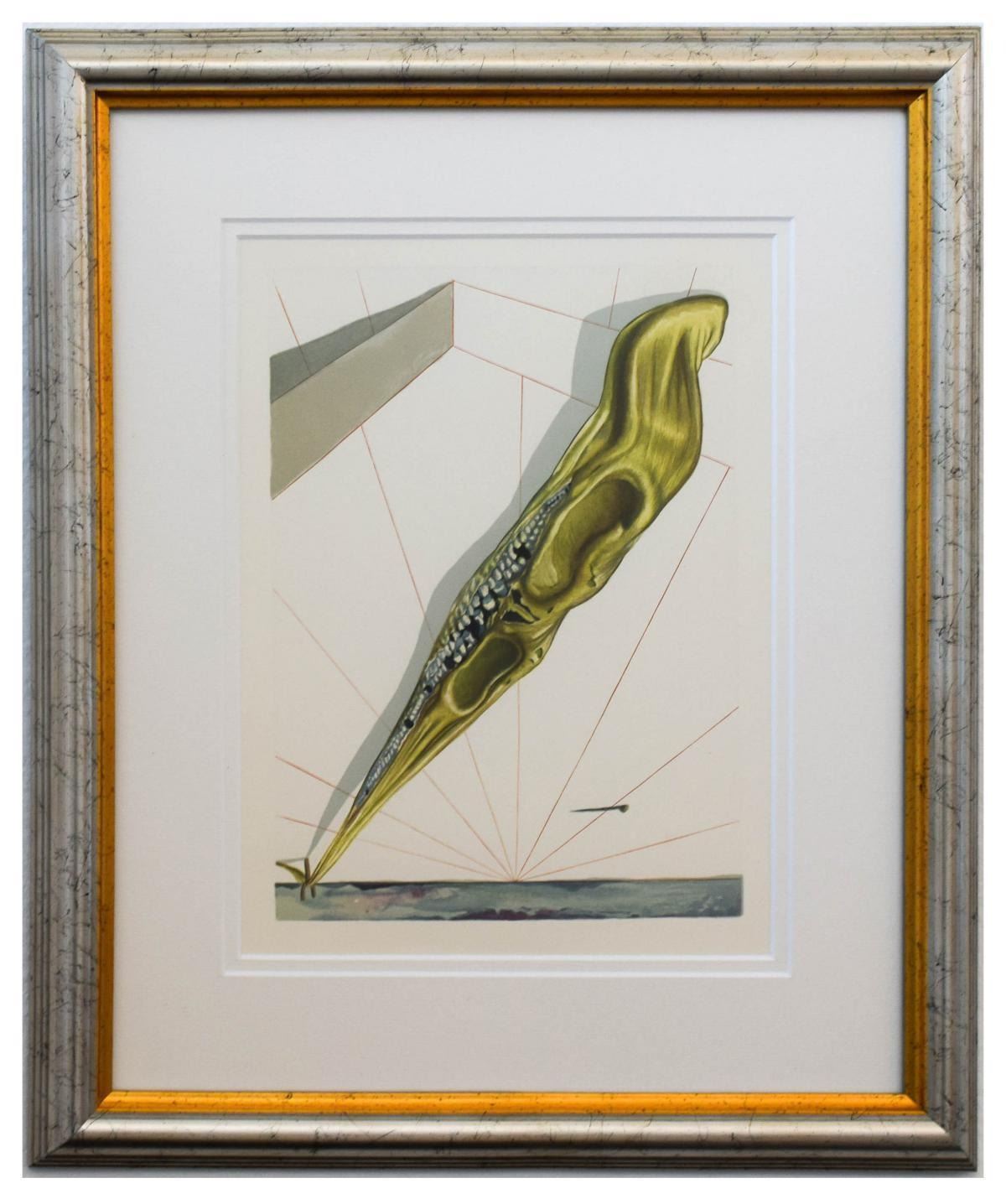 Artist: Salvador Dali. Medium: Original Color Woodcut on B.F.K. Rives Paper. Title: Inferno 14. Size (Unframed): 13" x 10". Size (Framed): 18" x 14". Certificate of Authenticity: Is included. Additional: Custom framed. Referenced in both the Albert Field guide (pages 189 - 202) and in Michler/Lopsinger (pages 102 - 114). Reference# 11997.