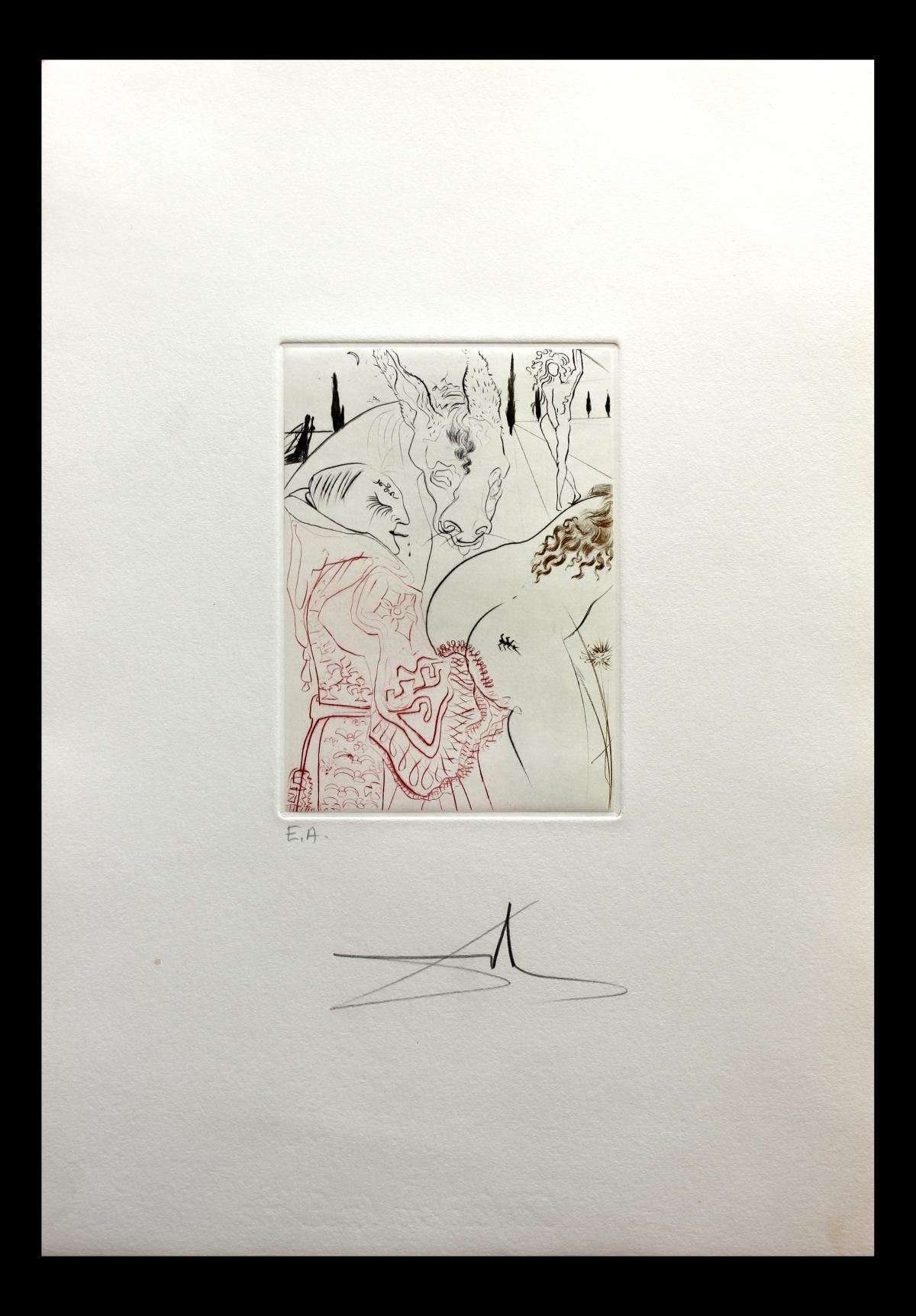 Artist: Salvador Dali. Medium: Original Engravings in color. Title: Le Jument de Compere Pierre. Size (Unframed): 18" x 12". Certificate of Authenticity: From Frank Hunter. Reference# 10401.