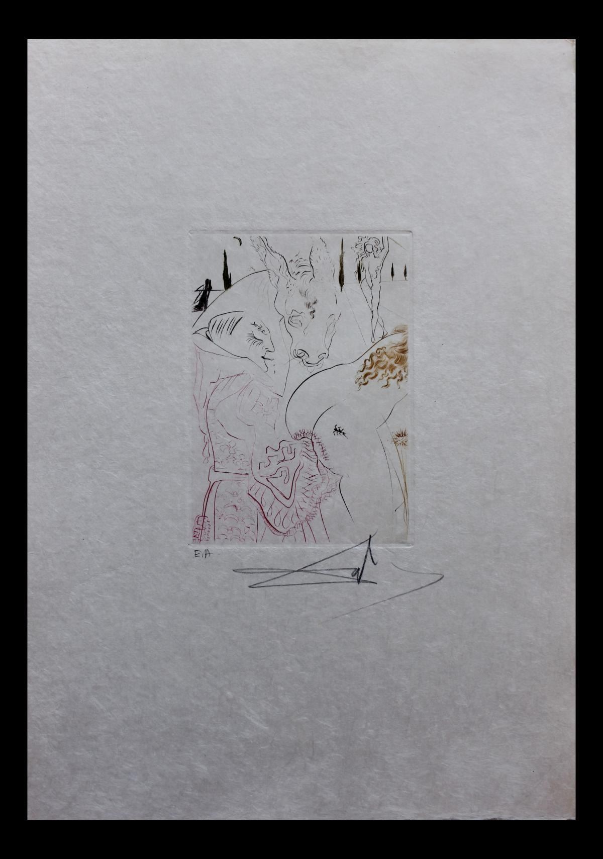 Artist: Salvador Dali. Medium: Original Engravings in color. Title: Le Jument de Compere Pierre. Size (Unframed): 18" x 12". Certificate of Authenticity: From Frank Hunter. Reference# 10397.