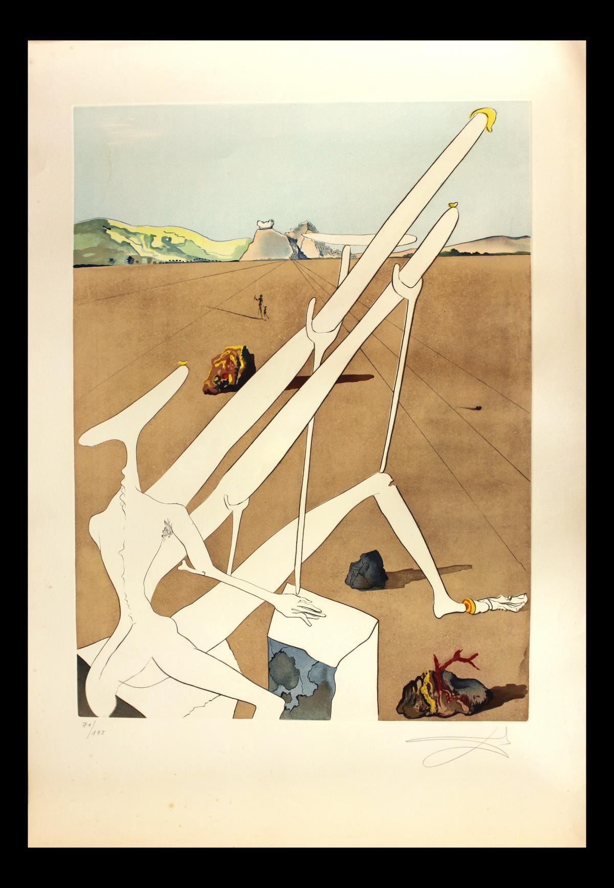 Artist: Salvador Dali. Medium: Original Engravings with Lithographic Color. Title: Dali Martian Muni Double Microscope Holoelectronique. Size (Unframed): 39" x 27.5". Certificate of Authenticity: From Frank Hunter. Reference# 10474.