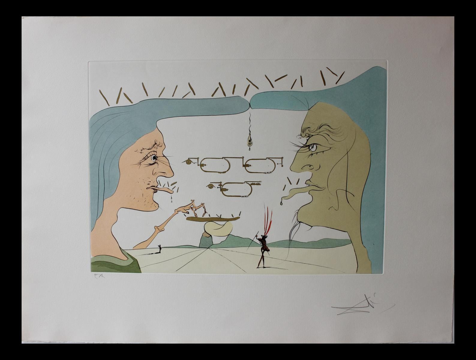 Artist: Salvador Dali. Medium: Original Engravings with color by pochoir. Title: Le telegraphe . Size (Unframed): 22" x 30". Certificate of Authenticity: From Frank Hunter. Reference# 10456.